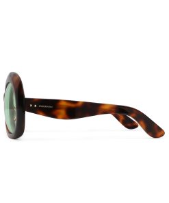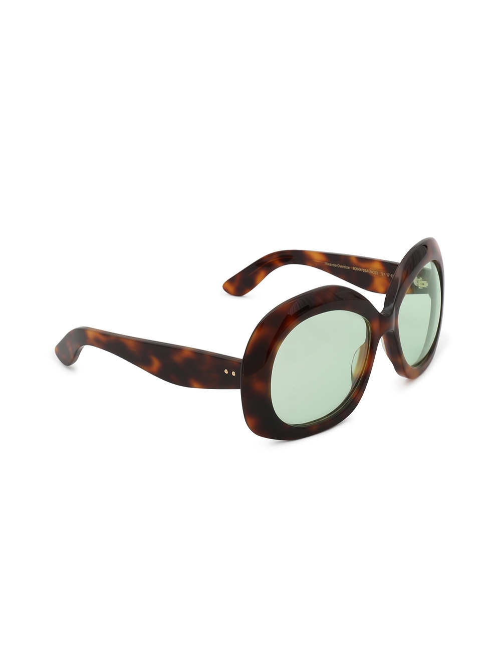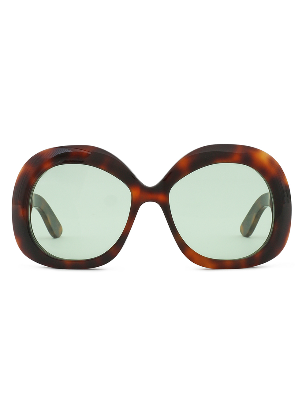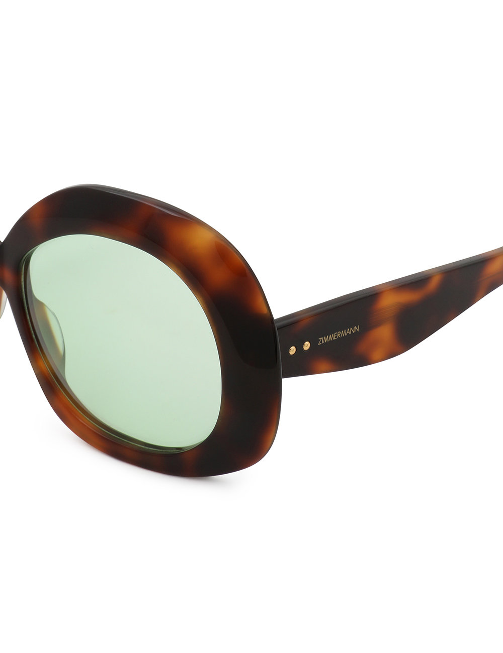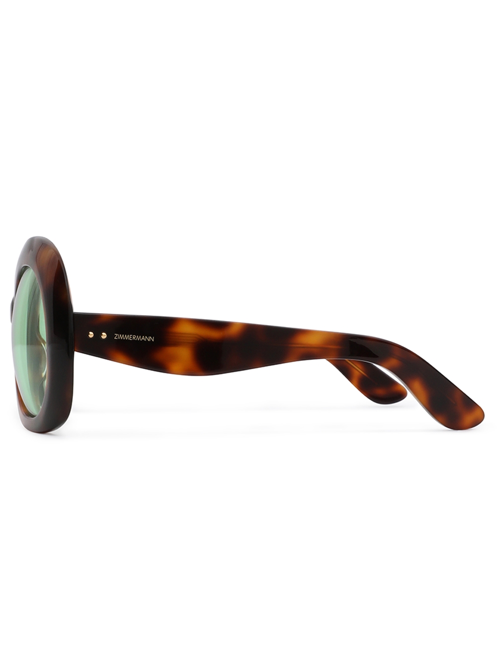 The Miranda Oversize in Moss from our Fall 2025 Collection, Hypnotic. An oversized round frame featuring signature wood-effect acetate, solid lenses and softly rounded bevelling. wood-effect acetate frame, solid coloured lenses, rounded bevelling, category 1 lenses, comes with zimmermann case, dust bag and storage box
