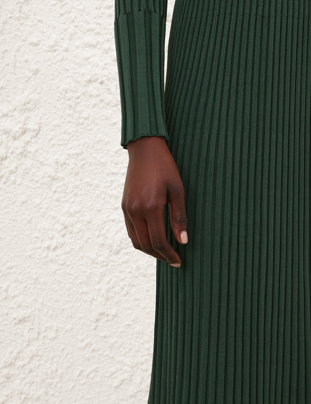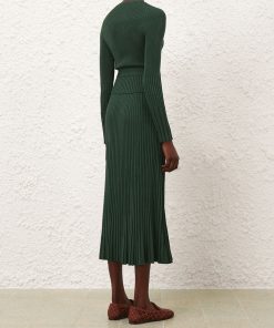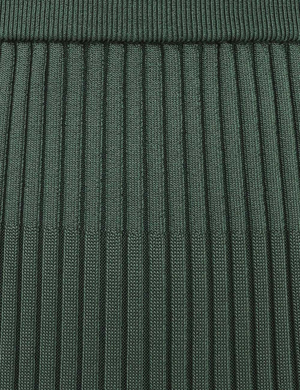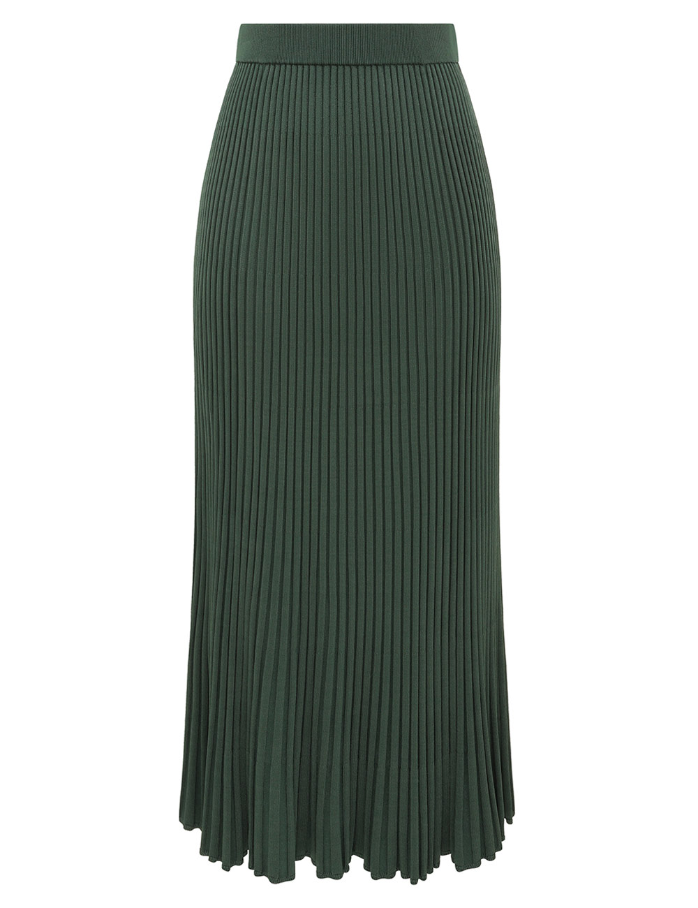 The Pleated Rib Midi Skirt in Dark Green from our Fall 2025 Collection, Hypnotic. A knit midi length skirt featuring an elasticated waist and a soft A-line silhouette.elasticated waist midi skirt, heavily pleated, slip on style
