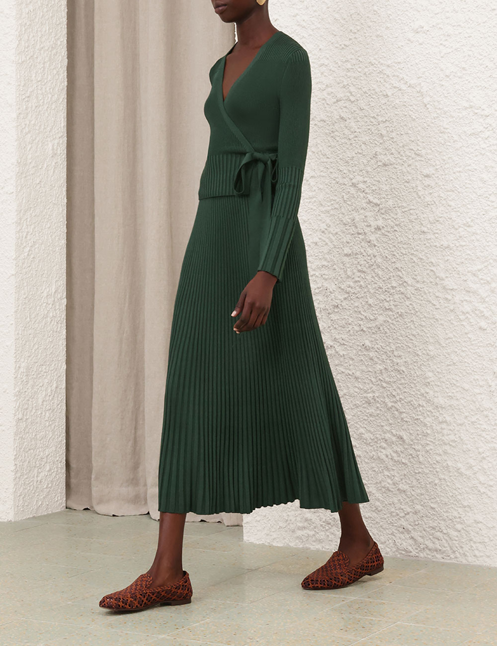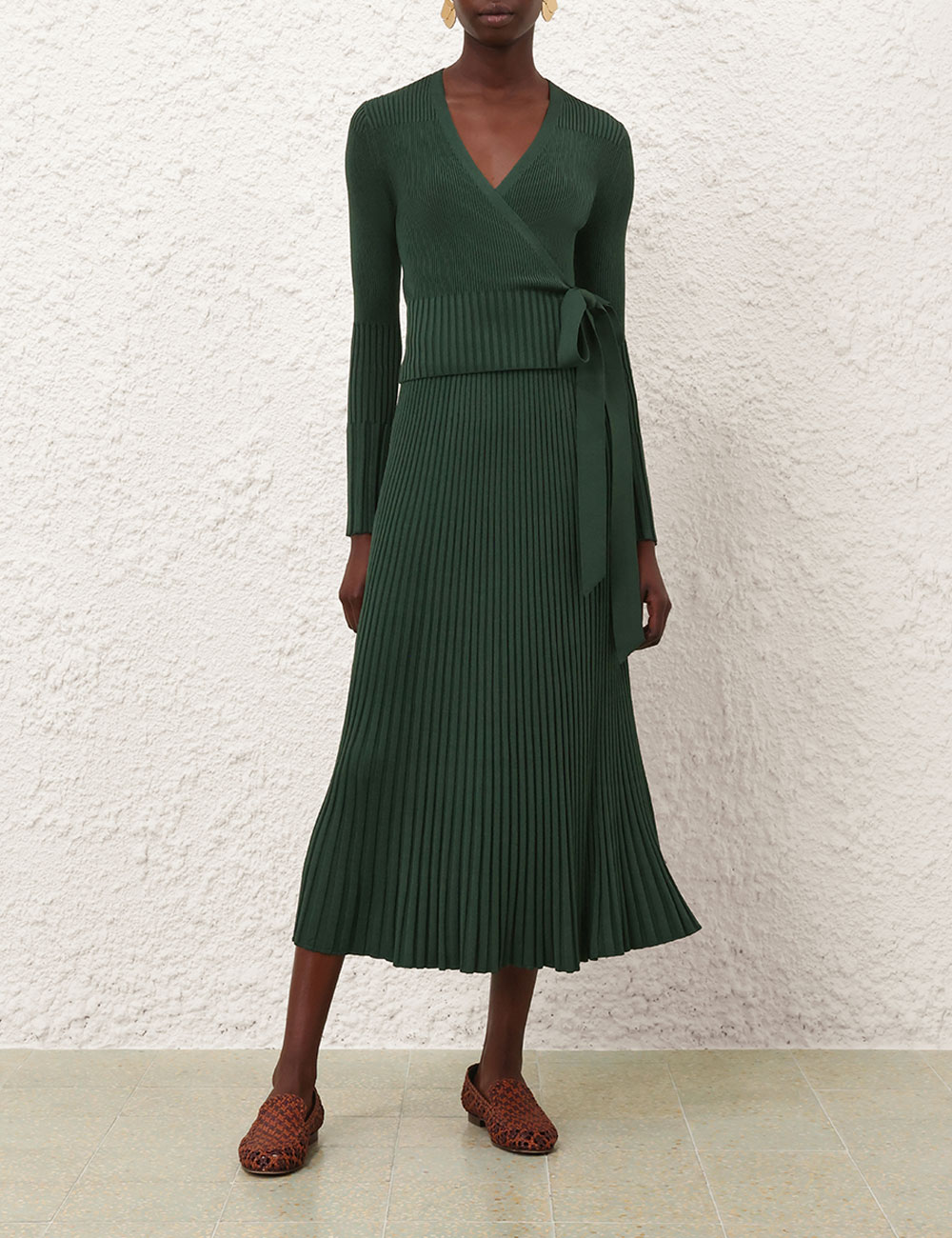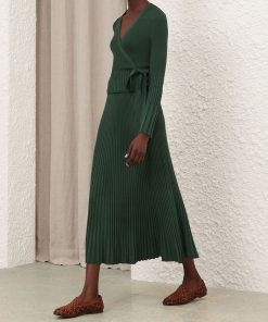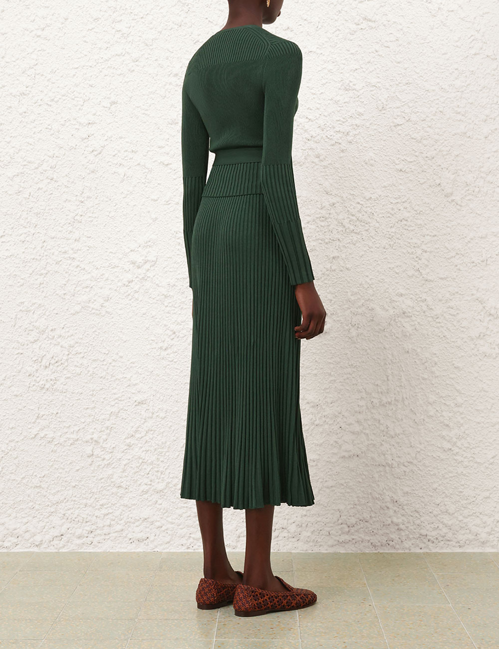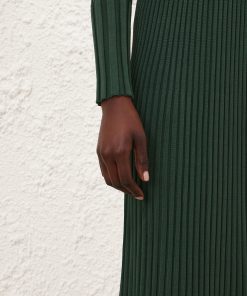 The Pleated Rib Midi Skirt in Dark Green from our Fall 2025 Collection, Hypnotic. A knit midi length skirt featuring an elasticated waist and a soft A-line silhouette.elasticated waist midi skirt, heavily pleated, slip on style